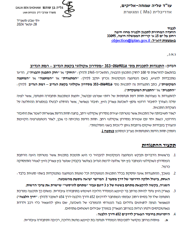 מצורף דף ראשון שהגישה המועצה כהתנגדות לסגירת היציאה הדרומית של המסדרון האקולוגי