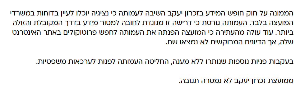• נושא שלישי: עתירה נוספת שהוגשה נגד המועצה והפעם- העדר שקיפות באתר המועצה. ושוב בפעם האלף, שקיפות היא תנאי יסוד לניהול יישוב.