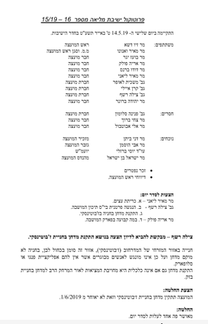 A similar motion was discussed at a plenary session held on May 14, 2019. All members of the outgoing plenary supported the motion submitted by the then-opposition member Zila Reshef, who is now the Deputy Mayor. The motion adopted at that time concerned the installation of a parking meter at the Duvim parking lot, which has 20 blue-and-white parking spaces. It follows, a fortiori, that a parking meter should be installed at the new Nili parking lot, which has 70 parking spaces. Attached on the next page as an appendix is the relevant excerpt from that session.