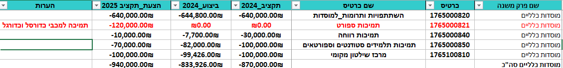 - Has budget item 1765000821 been implemented, i.e., has money been transferred to the Maccabi Association as indicated in the item, and was it only for the sports branches specified in the notes to the budget item?