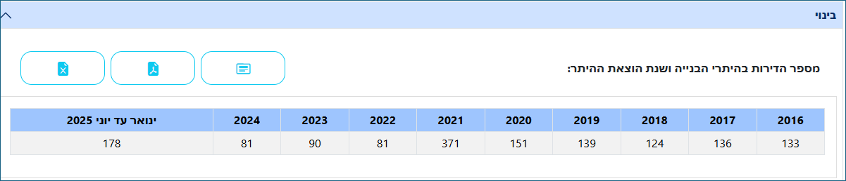 Between 2016 and 2021, important projects were carried out, such as the Wine Park (approx. 224 units, of which approx. 160 were under the “Price for the Resident” program) and very important TAMA 38 projects, but these projects were completed long ago, and now we are seeing a dramatic increase in the figures as shown in the 2025 data.
