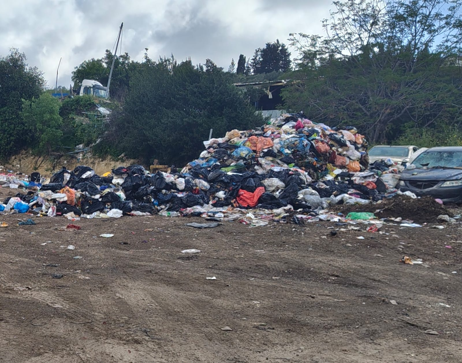 Even if there is a shortage of waste disposal sites or a lack of trucks for transport—this is certainly not the solution. We need large, permanently enclosed containers where trash can be sorted by type until it is transported to disposal sites. The reality is a polluted area where various types of waste are scattered, neither treated nor stored properly until they are transported to treatment or landfill sites.